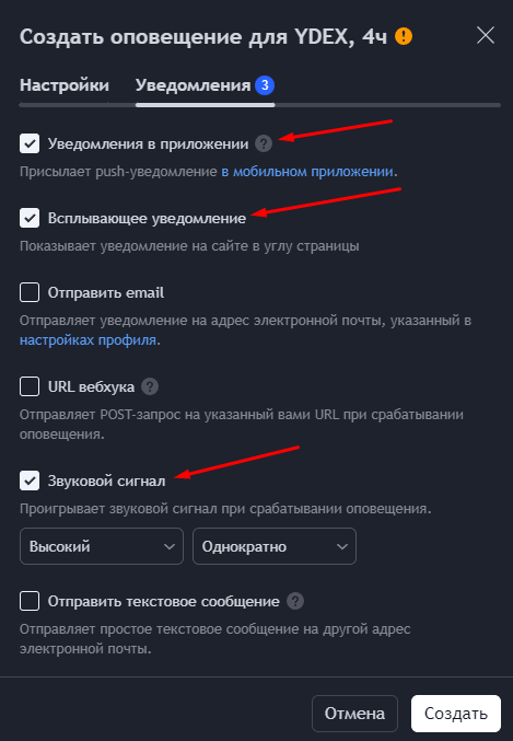 С помощью функции уведомлений, ты можешь получать сигналы на ПК и в мобильное приложение👇