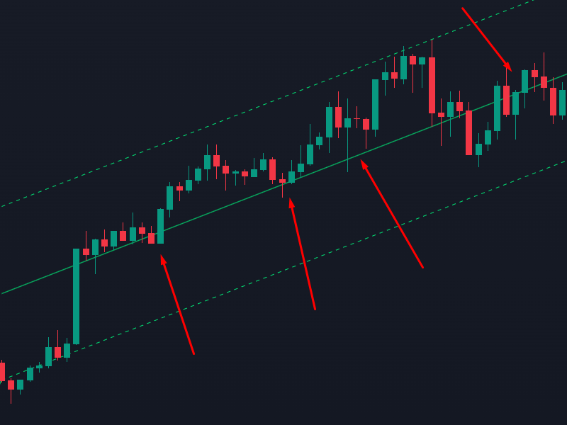 Верхняя граница канала часто работает как сопротивление, где цена может замедлиться или развернуться - в этот момент стоит рассматривать сделки на продажу